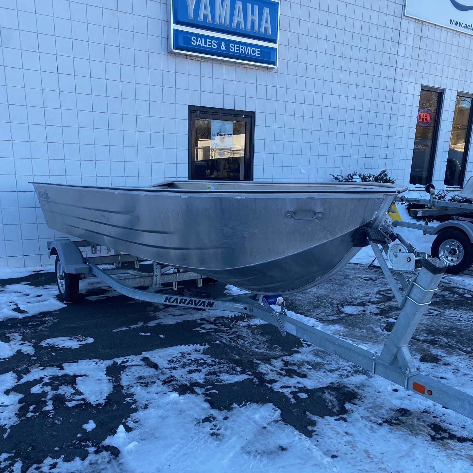 New 16' Marlon fishing boat with trailer. Boat model: SWV16. Beam width: 71". New Karavan trailer, model: KBL-1500-56. Price is without motor, but we have plenty in stock!